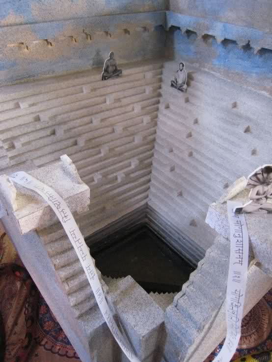 This trip we tried again to find it. Finding the Well of Sheshna is a very well kept secret in Varanasi and one of our dear Polish friends, Yogananda, did extensive research as to where we could find it. One of our drivers called him on his cell phone and Yogananda guided him and the rest of us to this very incredible spot. They have even built a gym on top of it to further disguise it, but having discovered it, there was no doubt that this was the real place where Patanjali wrote the Yoga Sutras at the very bottom of the well.